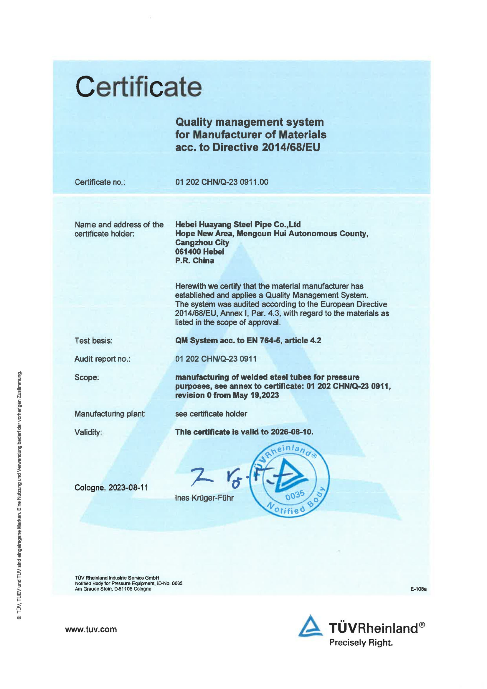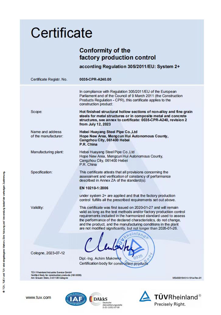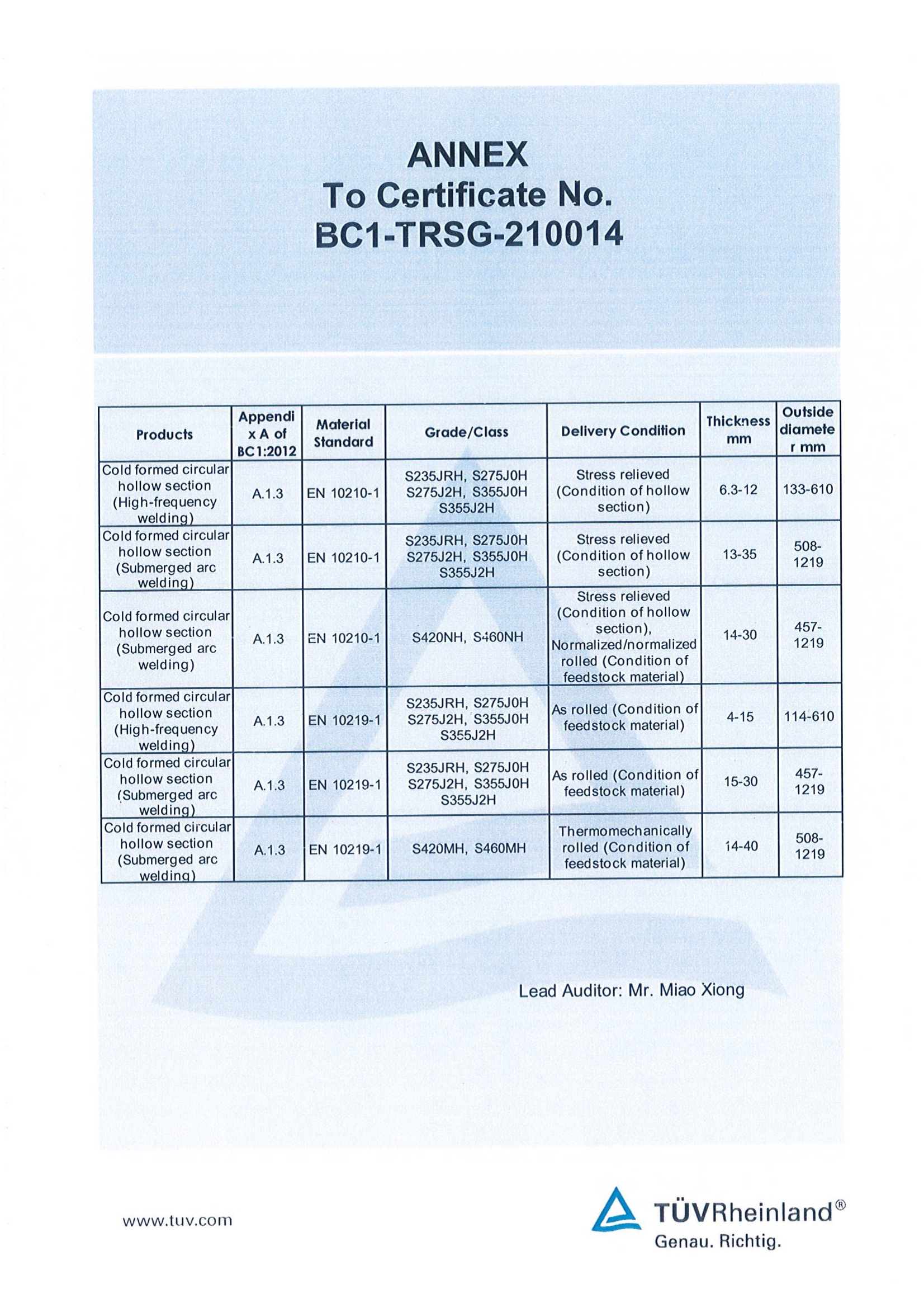 公司現(xiàn)有17條新型的自動(dòng)化鋼管生產(chǎn)線,包括Φ73-660.4高頻直縫焊鋼管生產(chǎn)線14條、Φ406.4-Φ1422.4直縫雙面埋弧焊鋼管生產(chǎn)線3條,并配備有一條防腐生產(chǎn)線,可進(jìn)行3PE、2PE、FBE、2PP、3PP防腐處理,同時(shí)還可提供鋼管深加工服務(wù)。公司擁有先進(jìn)的理化實(shí)驗(yàn)室,可承擔(dān)鋼管的各項(xiàng)物理及化學(xué)檢測與試驗(yàn)。公司先后取得了ISO9001質(zhì)量管理體系認(rèn)證、ISO14001環(huán)境管理體系認(rèn)證、ISO45001職業(yè)健康安全管理體系認(rèn)證、特種設(shè)備制造許可證、API5L和API2B認(rèn)證證書、歐盟CE認(rèn)證、俄羅斯GOST認(rèn)證、中海油入網(wǎng)證、安全生產(chǎn)標(biāo)準(zhǔn)化二級企業(yè)等標(biāo)準(zhǔn)質(zhì)量體系認(rèn)證。